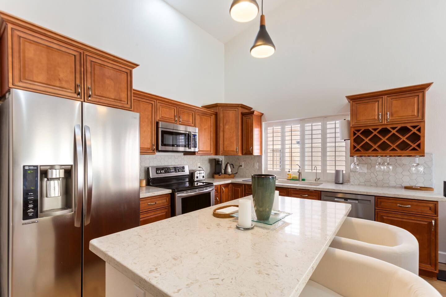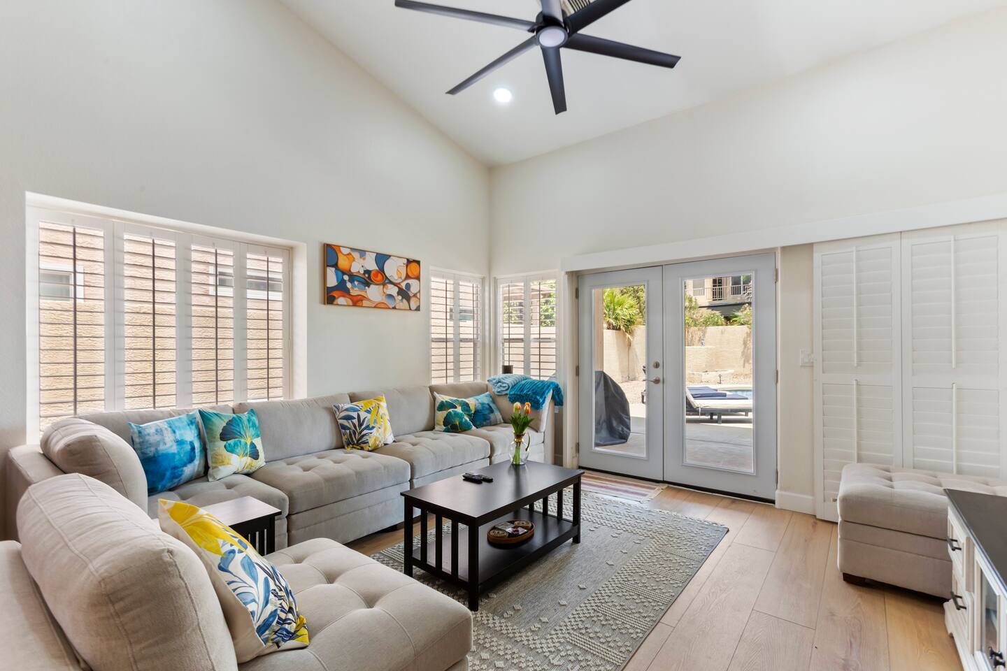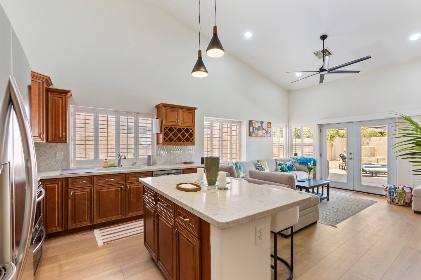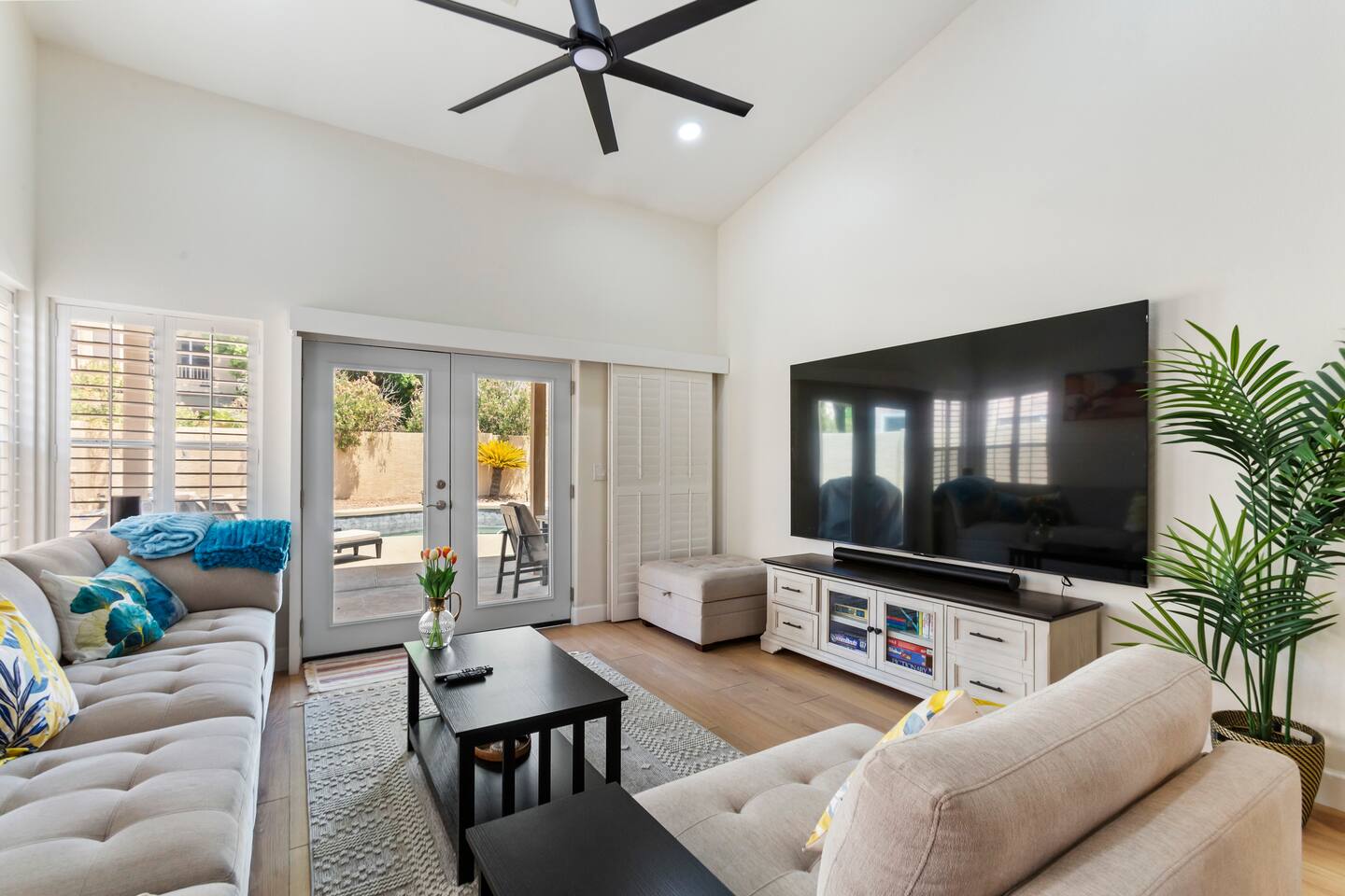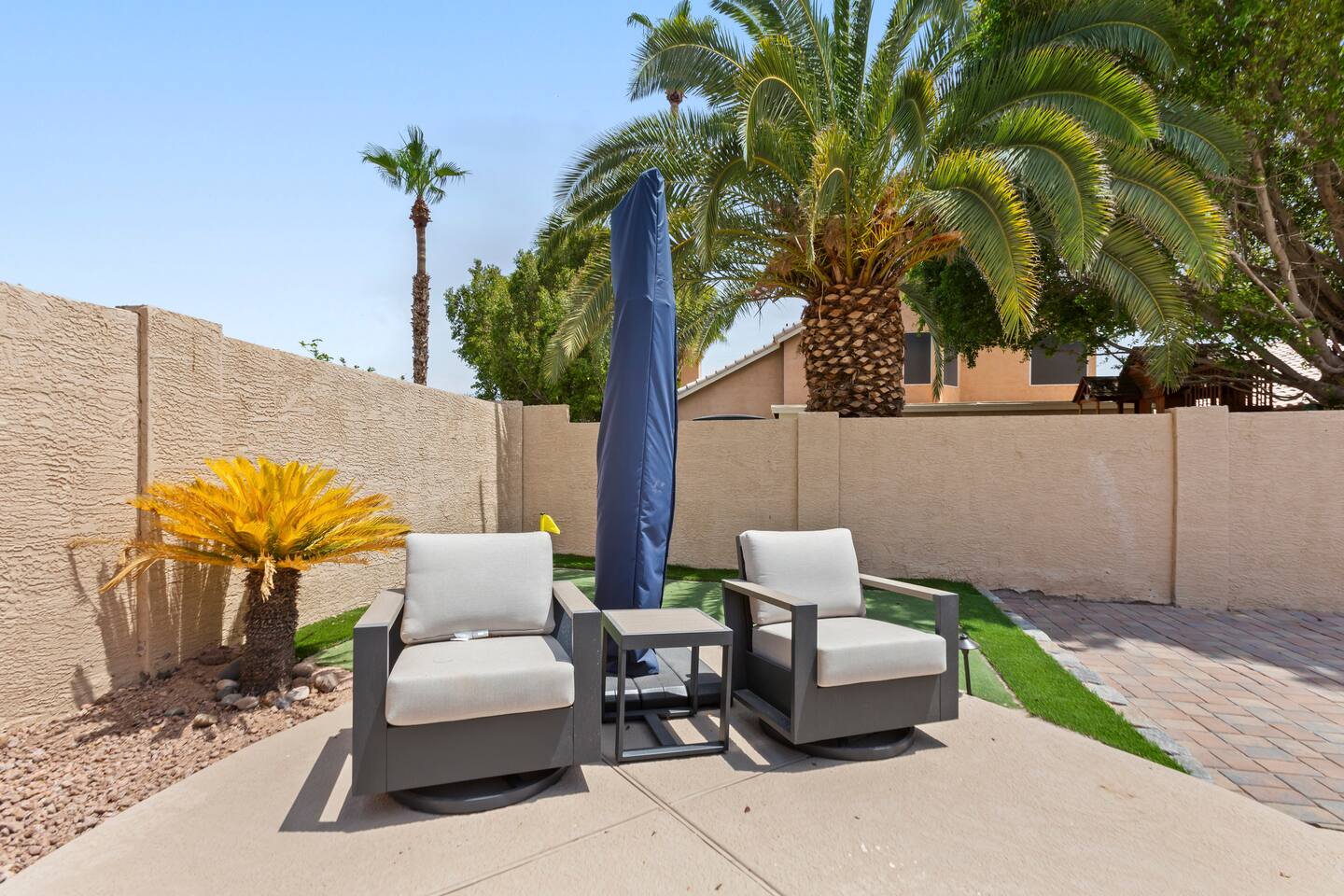 Picture this: mornings on the covered patio with coffee while the kids plan a cannonball lineup; afternoons rotating between the private pool and the putting green; evenings gathered around the table for games and easy laughter. Inside, this single-story, contemporary 4BR/2BA home blends crisp design with family-friendly comfort—plush seating, smart TVs in every key space, and plantation shutters when it’s time to wind down. ☀️ The fully stocked kitchen makes cooking a breeze—chat at the kitchen island while meals come together, then step right outside for BBQ and alfresco dining. Coffee lovers are covered with a Keurig + hot water kettle and a curated selection of pods and teas. When duty calls, a dedicated workspace and super high-speed Wi-Fi keep remote days productive. 🧑💻 Sleeping is simple and comfortable, including a kids’ room designed with families in mind. Throughout the home, ceiling fans and great AC keep things cool after your desert adventures—because you’ll want plenty of those. Out back, you’ll find four chaise lounges, additional seating with a large umbrella, and a big yard that invites all-day play. (Note: pool is not heated.) 🏊♂️ What truly sets this home apart is the Ahwatukee location: you’re at the doorstep of South Mountain—legendary hiking and mountain biking (don’t miss the Desert Classic trail), stellar road cycling, and easy access to golf, restaurants, and shopping. Zip to Sky Harbor, the Desert Botanical Garden, Phoenix Zoo, spring training ballparks, Premium Outlets, and Downtown Phoenix in no time thanks to quick freeway access. 🚴♂️ You’ll arrive to driveway + garage parking and smart-lock entry for smooth check-ins. This is an active-family-ready basecamp—remote-work friendly, thoughtfully remodeled and styled for comfort, and set in a welcoming neighborhood. You’ll absolutely LOVE our location: South Mountain – Pima Canyon/Desert Classic Trailhead – 2.3 mi Tempe Diablo Stadium (Angels spring training) – 3.7 mi Phoenix Premium Outlets (Wild Horse Pass) – 4.3 mi Sky Harbor International Airport – 6.1 mi Phoenix Zoo – 7.2 mi Desert Botanical Garden – 8.1 mi Sloan Park (Cubs spring training) – 8.5 mi Downtown Phoenix (CityScape) – 8.7 mi Salt River Fields (D-backs/Rockies spring training) – 15.8 mi TPT License: 21618500