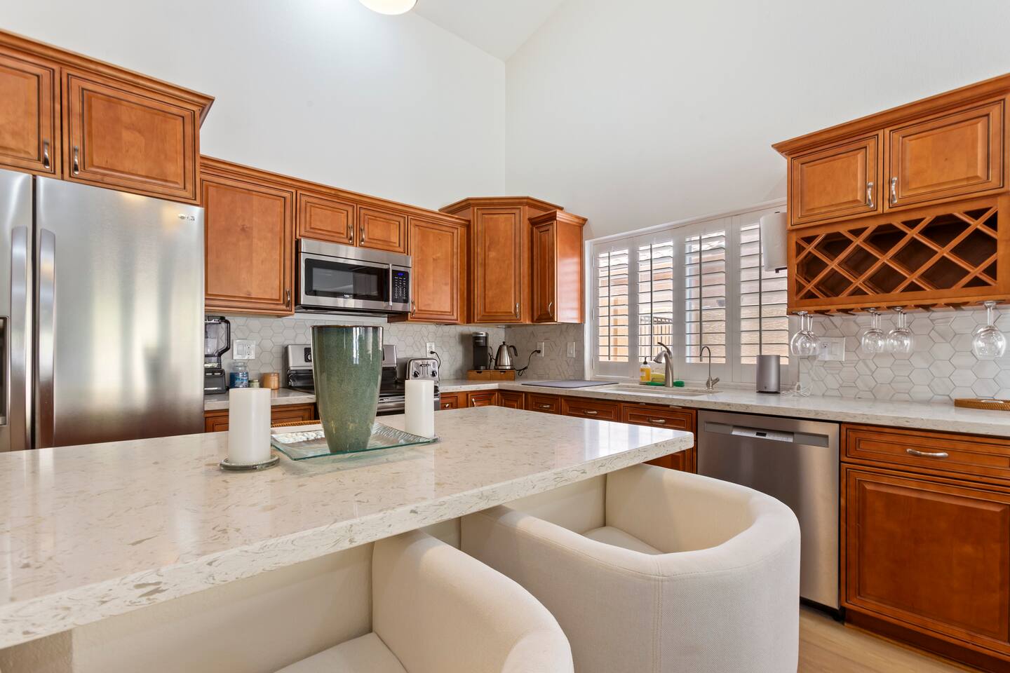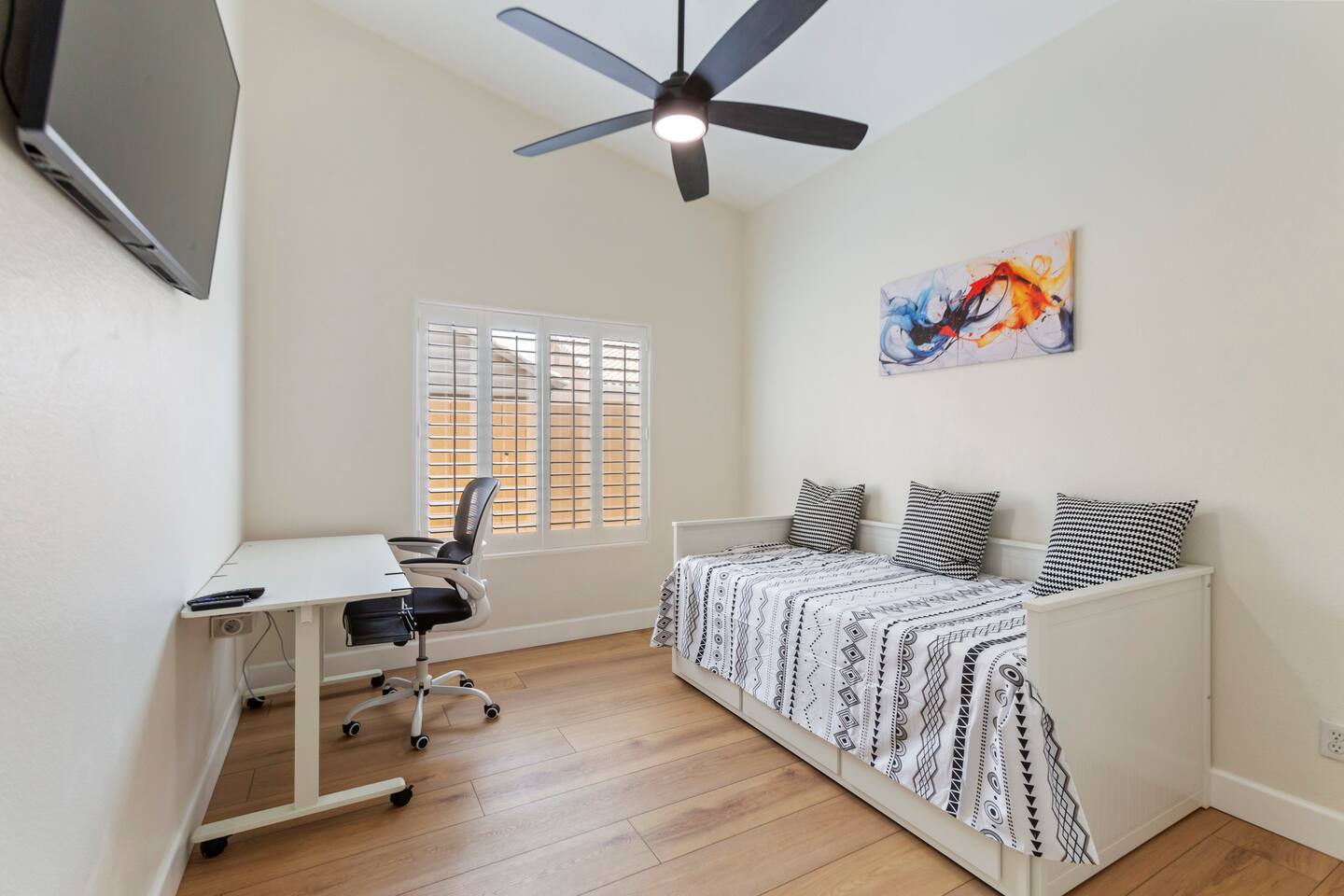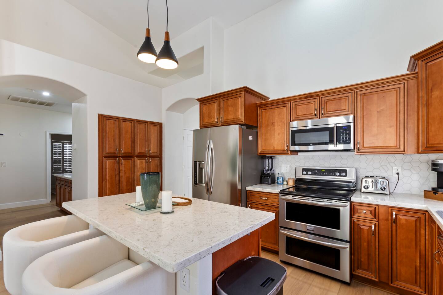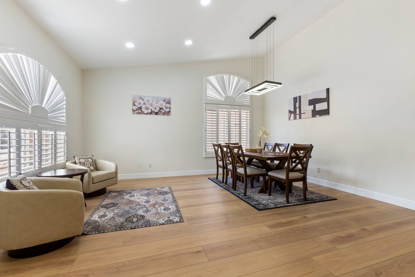 Picture this: mornings on the covered patio with coffee while the kids plan a cannonball lineup; afternoons rotating between the private pool and the putting green; evenings gathered around the table for games and easy laughter. Inside, this single-story, contemporary 4BR/2BA home blends crisp design with family-friendly comfort—plush seating, smart TVs in every key space, and plantation shutters when it’s time to wind down. ☀️ The fully stocked kitchen makes cooking a breeze—chat at the kitchen island while meals come together, then step right outside for BBQ and alfresco dining. Coffee lovers are covered with a Keurig + hot water kettle and a curated selection of pods and teas. When duty calls, a dedicated workspace and super high-speed Wi-Fi keep remote days productive. 🧑💻 Sleeping is simple and comfortable, including a kids’ room designed with families in mind. Throughout the home, ceiling fans and great AC keep things cool after your desert adventures—because you’ll want plenty of those. Out back, you’ll find four chaise lounges, additional seating with a large umbrella, and a big yard that invites all-day play. (Note: pool is not heated.) 🏊♂️ What truly sets this home apart is the Ahwatukee location: you’re at the doorstep of South Mountain—legendary hiking and mountain biking (don’t miss the Desert Classic trail), stellar road cycling, and easy access to golf, restaurants, and shopping. Zip to Sky Harbor, the Desert Botanical Garden, Phoenix Zoo, spring training ballparks, Premium Outlets, and Downtown Phoenix in no time thanks to quick freeway access. 🚴♂️ You’ll arrive to driveway + garage parking and smart-lock entry for smooth check-ins. This is an active-family-ready basecamp—remote-work friendly, thoughtfully remodeled and styled for comfort, and set in a welcoming neighborhood. You’ll absolutely LOVE our location: South Mountain – Pima Canyon/Desert Classic Trailhead – 2.3 mi Tempe Diablo Stadium (Angels spring training) – 3.7 mi Phoenix Premium Outlets (Wild Horse Pass) – 4.3 mi Sky Harbor International Airport – 6.1 mi Phoenix Zoo – 7.2 mi Desert Botanical Garden – 8.1 mi Sloan Park (Cubs spring training) – 8.5 mi Downtown Phoenix (CityScape) – 8.7 mi Salt River Fields (D-backs/Rockies spring training) – 15.8 mi TPT License: 21618500