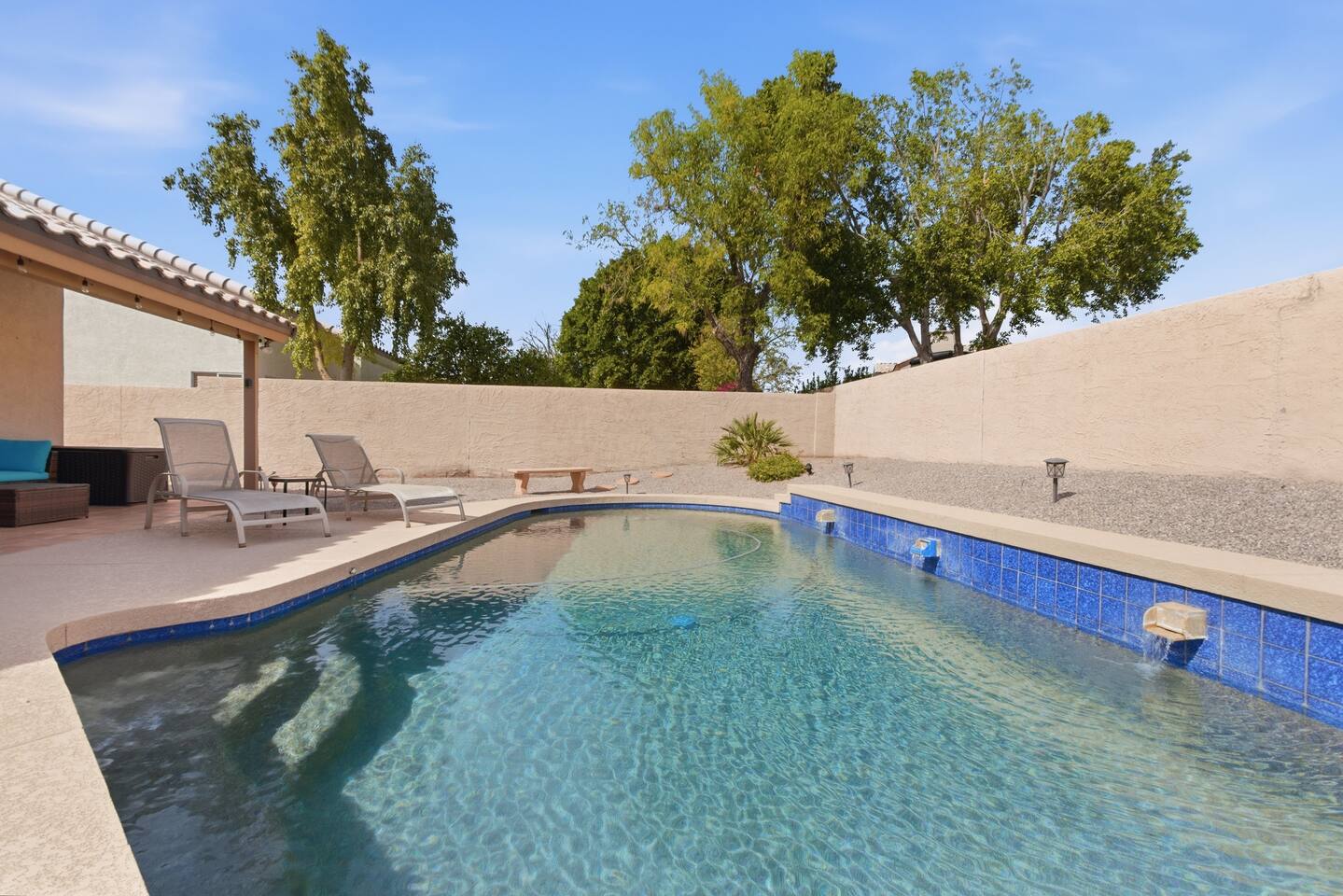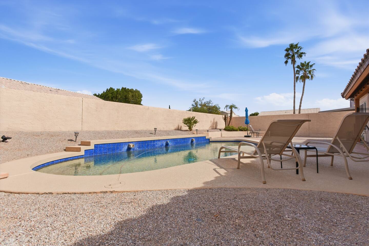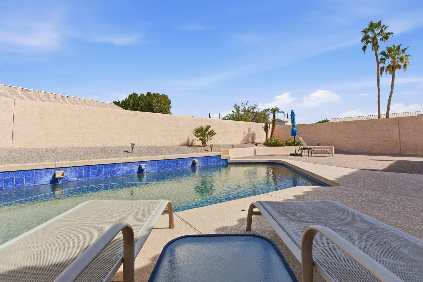 Discover the tranquility & peace of your own little oasis in the desert! Enjoy the sparkling blue saltwater pool, chefs kitchen, plenty of space to spread out & hotel-like amenities to boot! Not to mention a great neighborhood with private backyard and speedy fiber optic wifi!