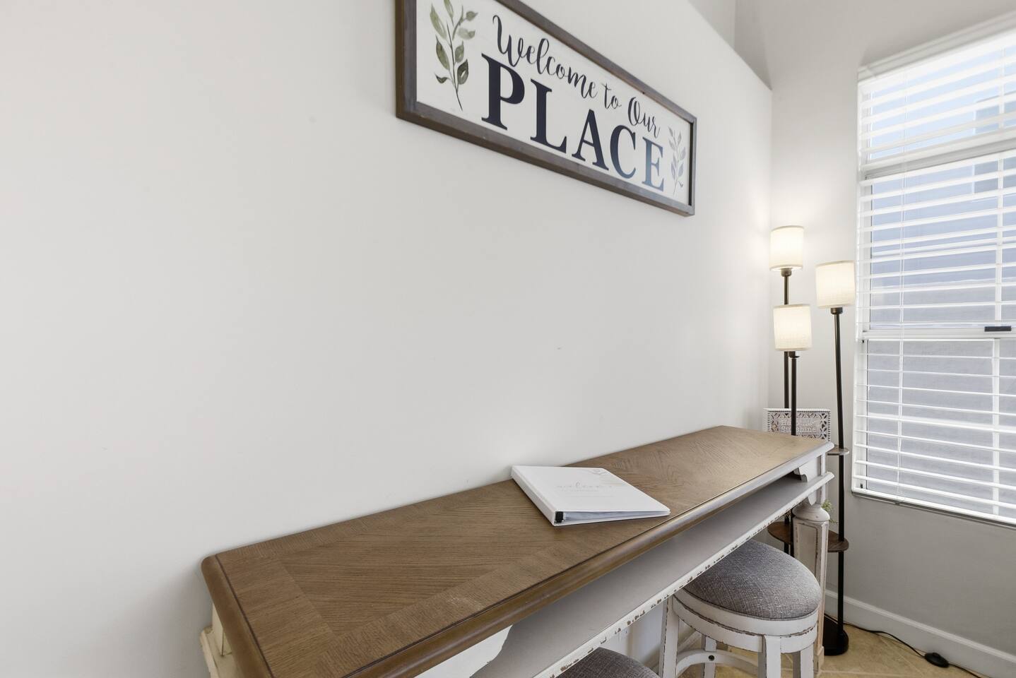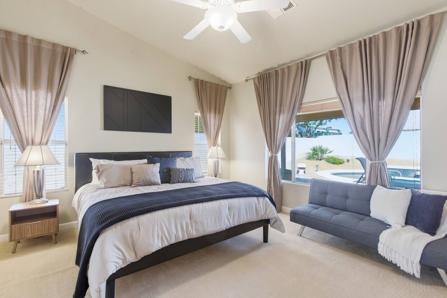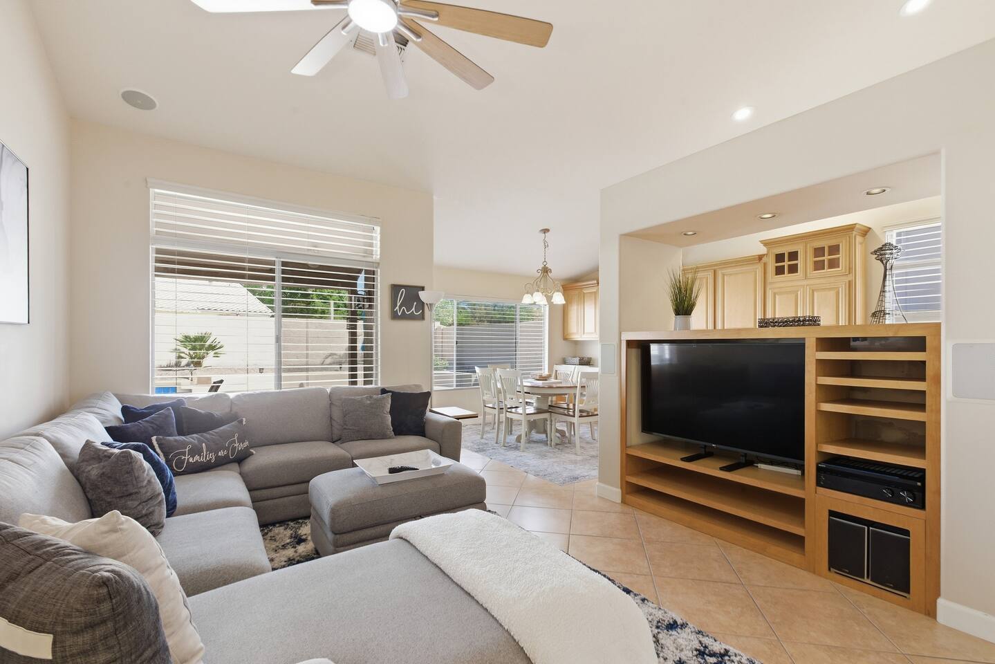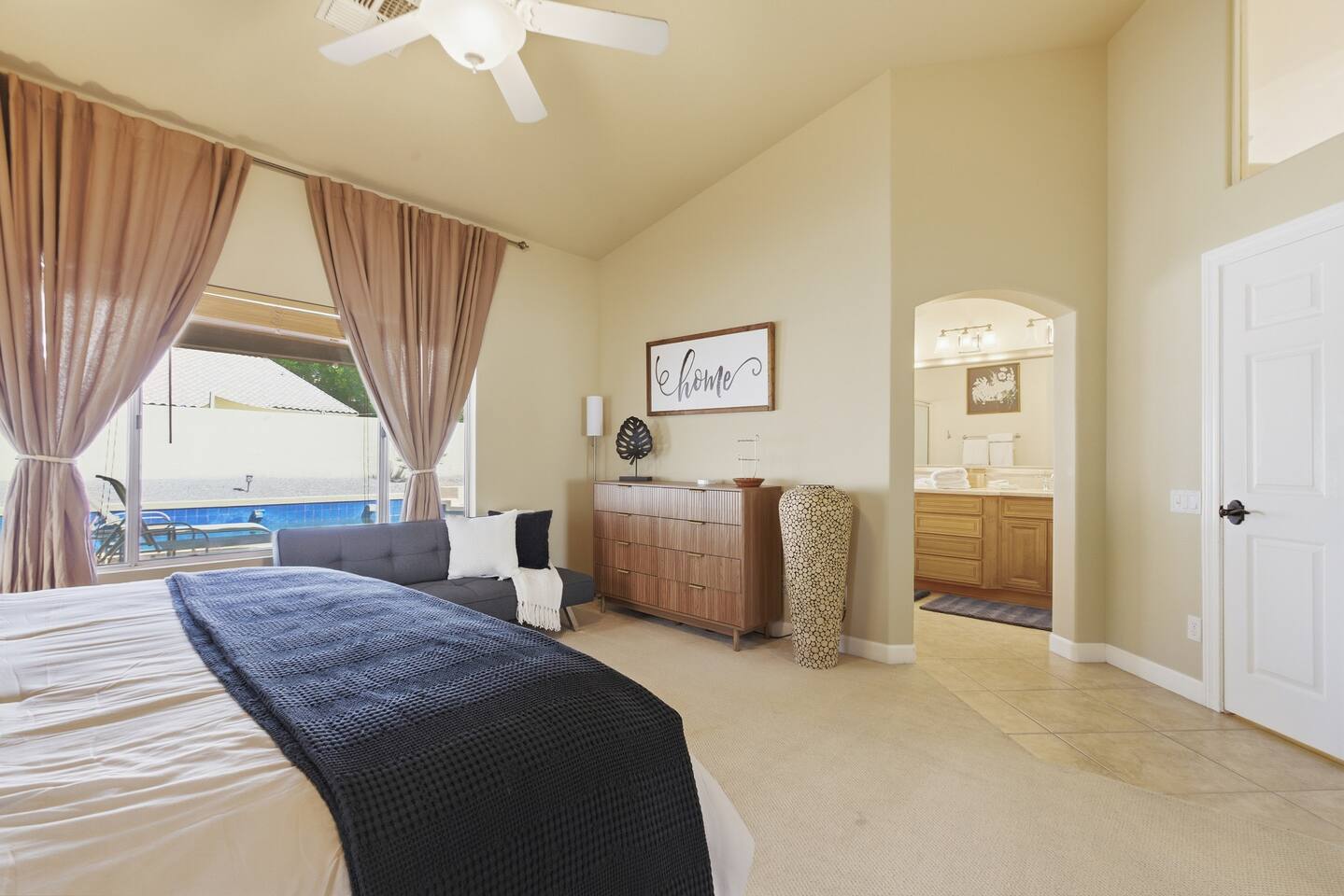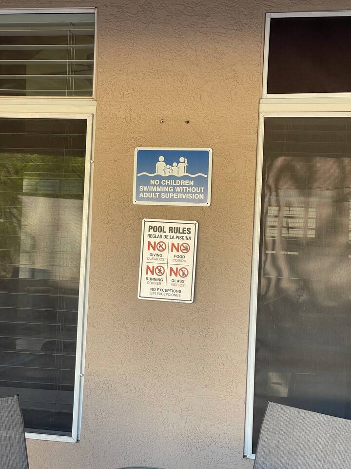 Beautiful open concept 3 bedroom 2 bath home. Every room has ceiling fans. Bedrooms have door locks. There is a dedicated work space in one of the guest bedrooms along with an HP printer, also a sofa table with barstools in the front room that doubles as a work space. **Please Note: The Pool has NO heater and winter months while it is sunny & warm the pool temps will drop drastically and that my friend is BRRR, think polar plunge, Nov-March. ***Guests will have access to the entire home with the exception of the Garage and 1 Owners Closet in 2nd Bedroom.