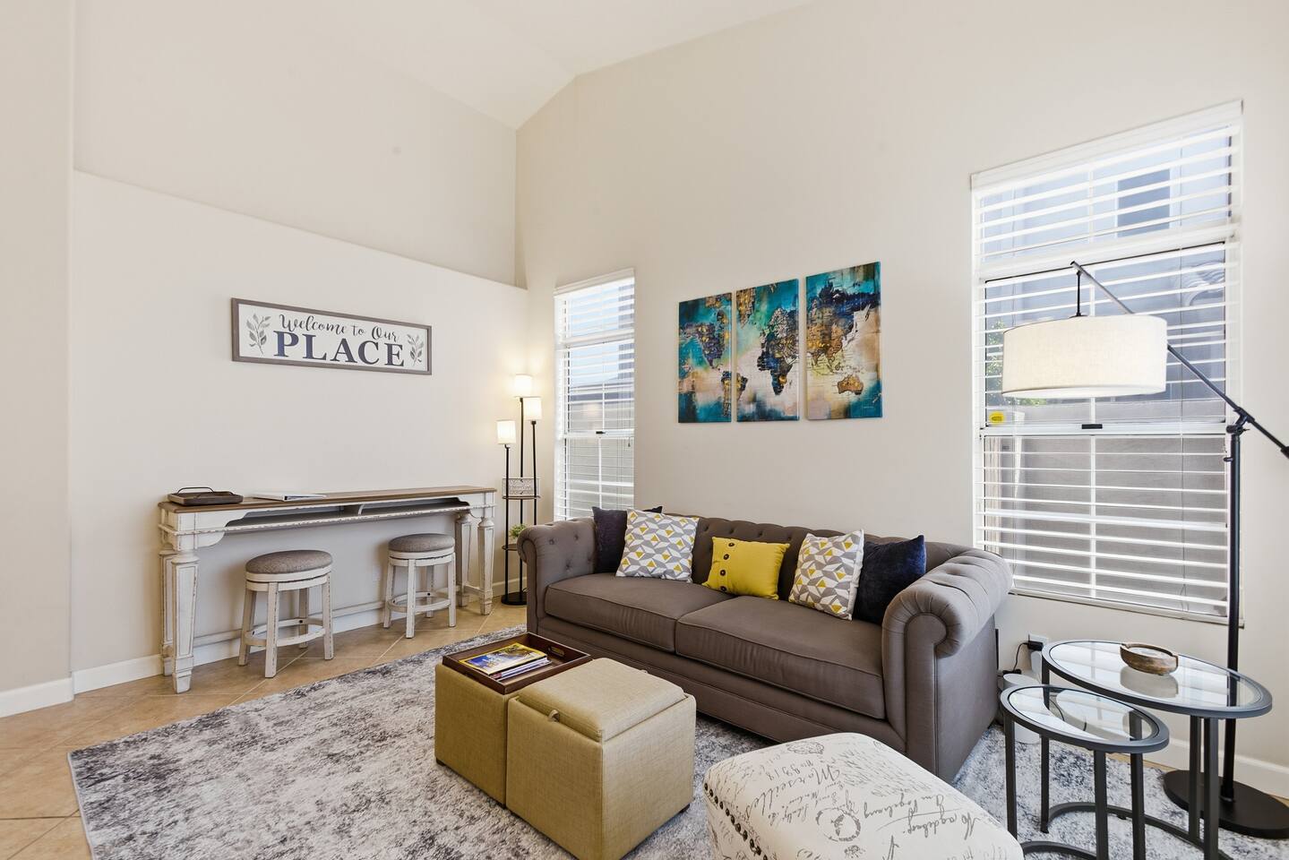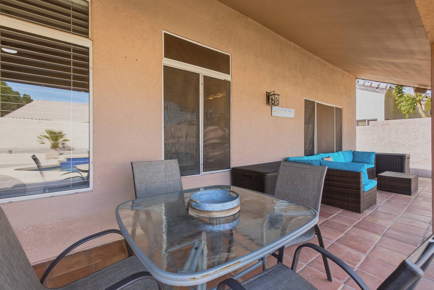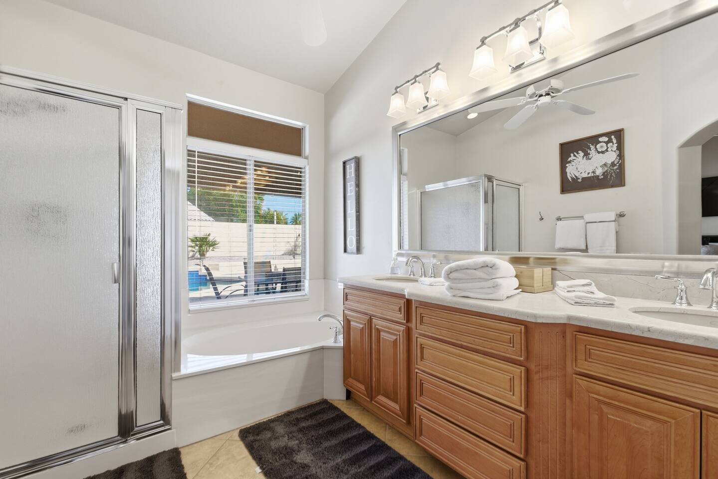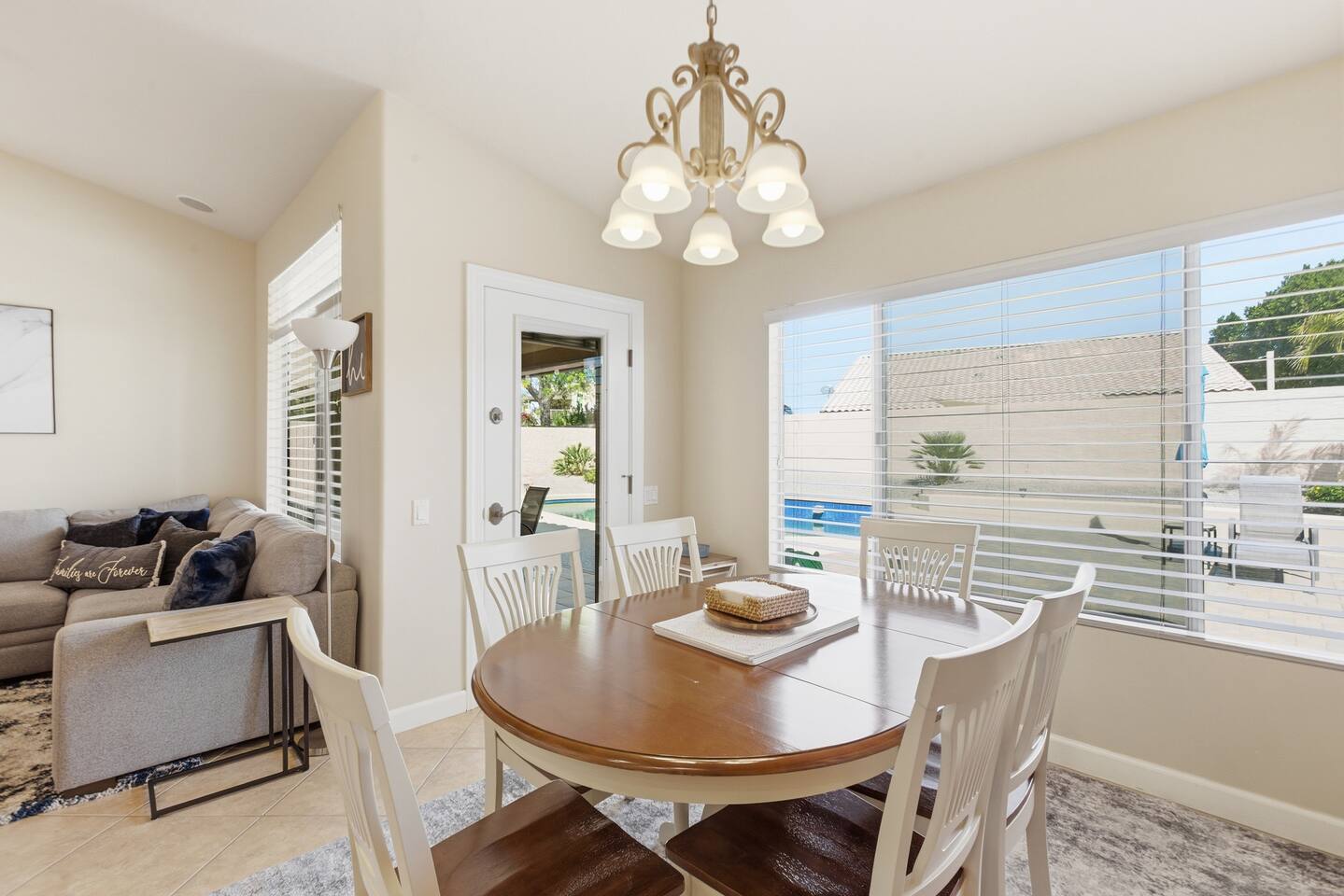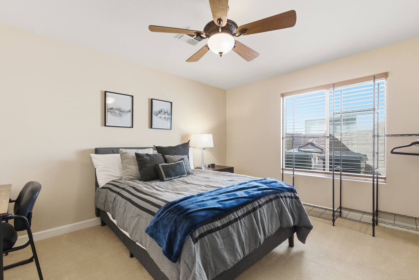 Beautiful open concept 3 bedroom 2 bath home. Every room has ceiling fans. Bedrooms have door locks. There is a dedicated work space in one of the guest bedrooms along with an HP printer, also a sofa table with barstools in the front room that doubles as a work space. **Please Note: The Pool has NO heater and winter months while it is sunny & warm the pool temps will drop drastically and that my friend is BRRR, think polar plunge, Nov-March. ***Guests will have access to the entire home with the exception of the Garage and 1 Owners Closet in 2nd Bedroom.