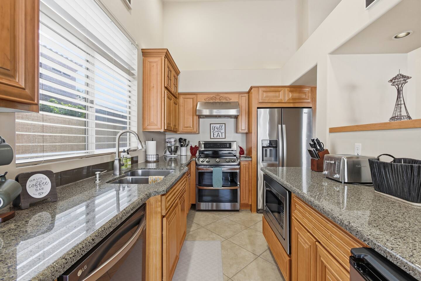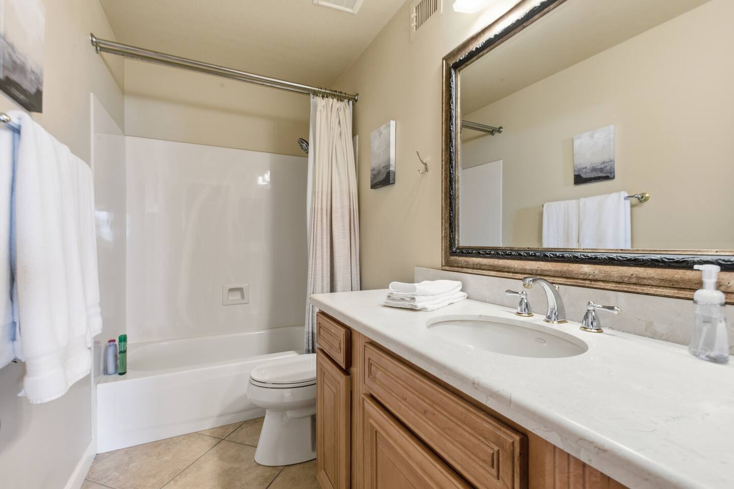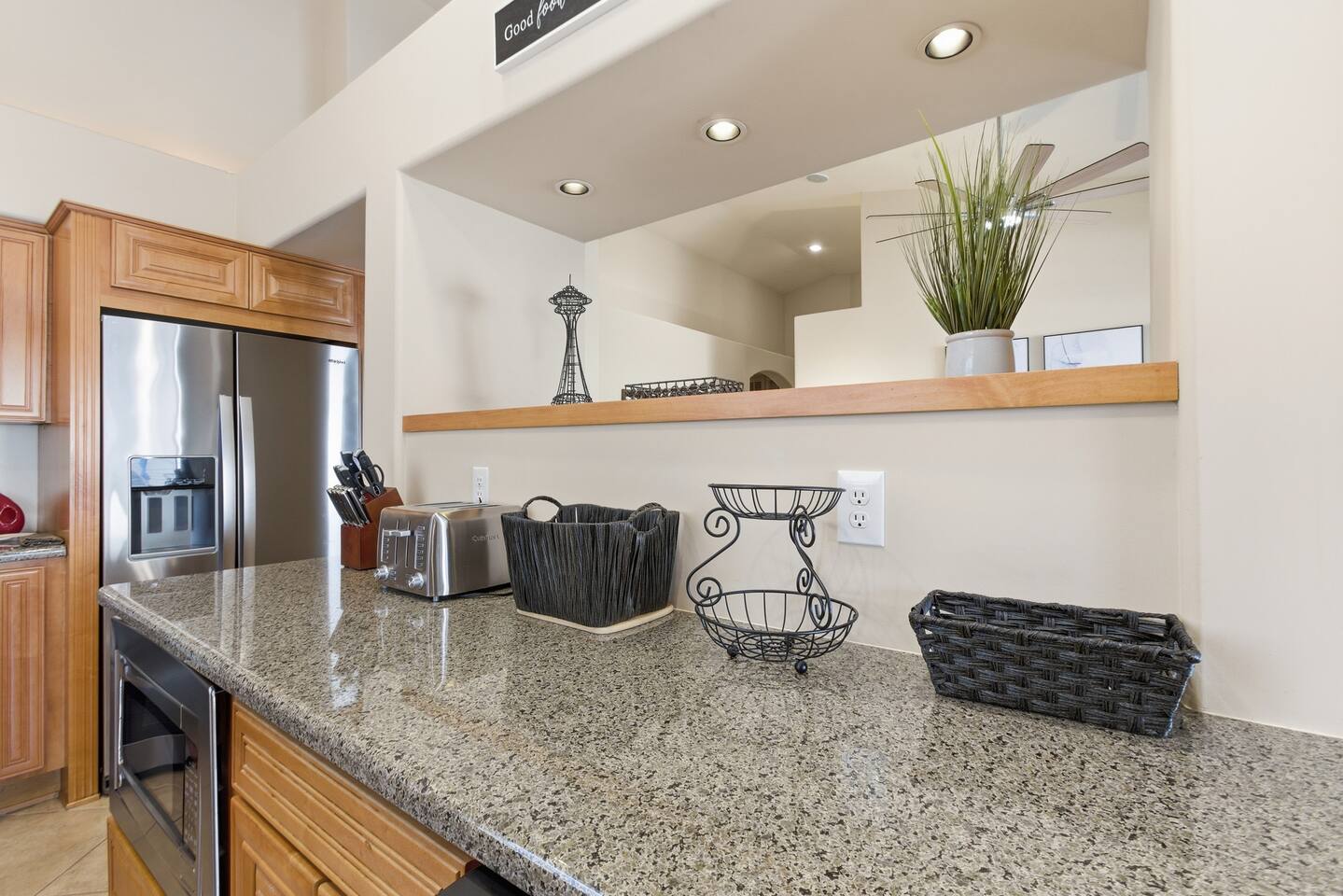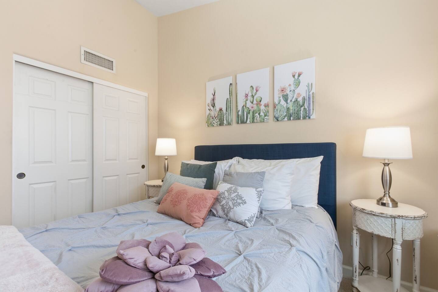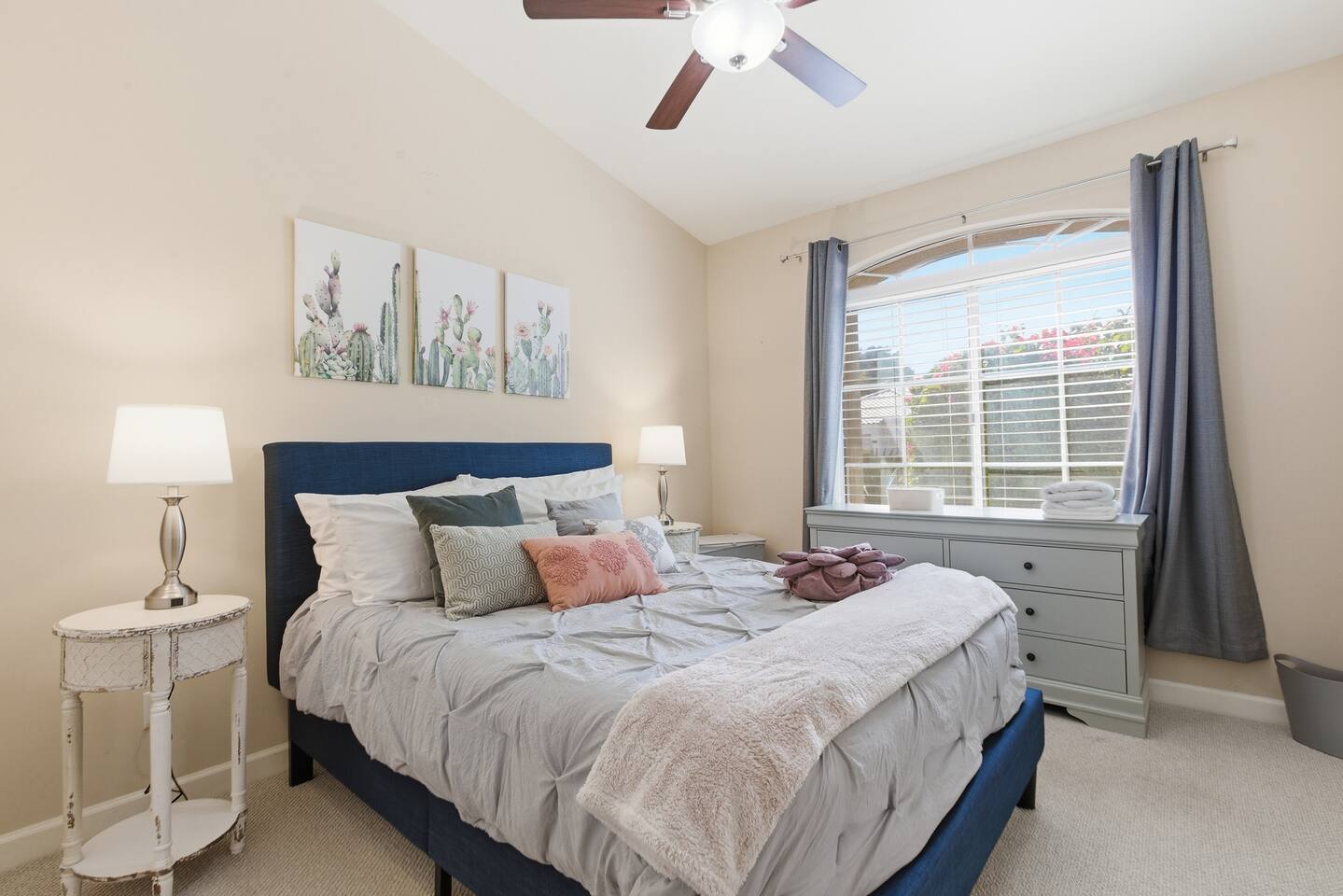 Beautiful open concept 3 bedroom 2 bath home. Every room has ceiling fans. Bedrooms have door locks. There is a dedicated work space in one of the guest bedrooms along with an HP printer, also a sofa table with barstools in the front room that doubles as a work space. **Please Note: The Pool has NO heater and winter months while it is sunny & warm the pool temps will drop drastically and that my friend is BRRR, think polar plunge, Nov-March. ***Guests will have access to the entire home with the exception of the Garage and 1 Owners Closet in 2nd Bedroom.