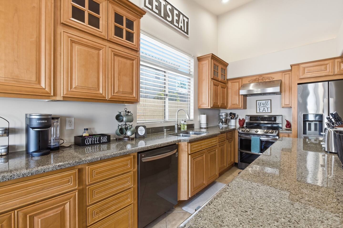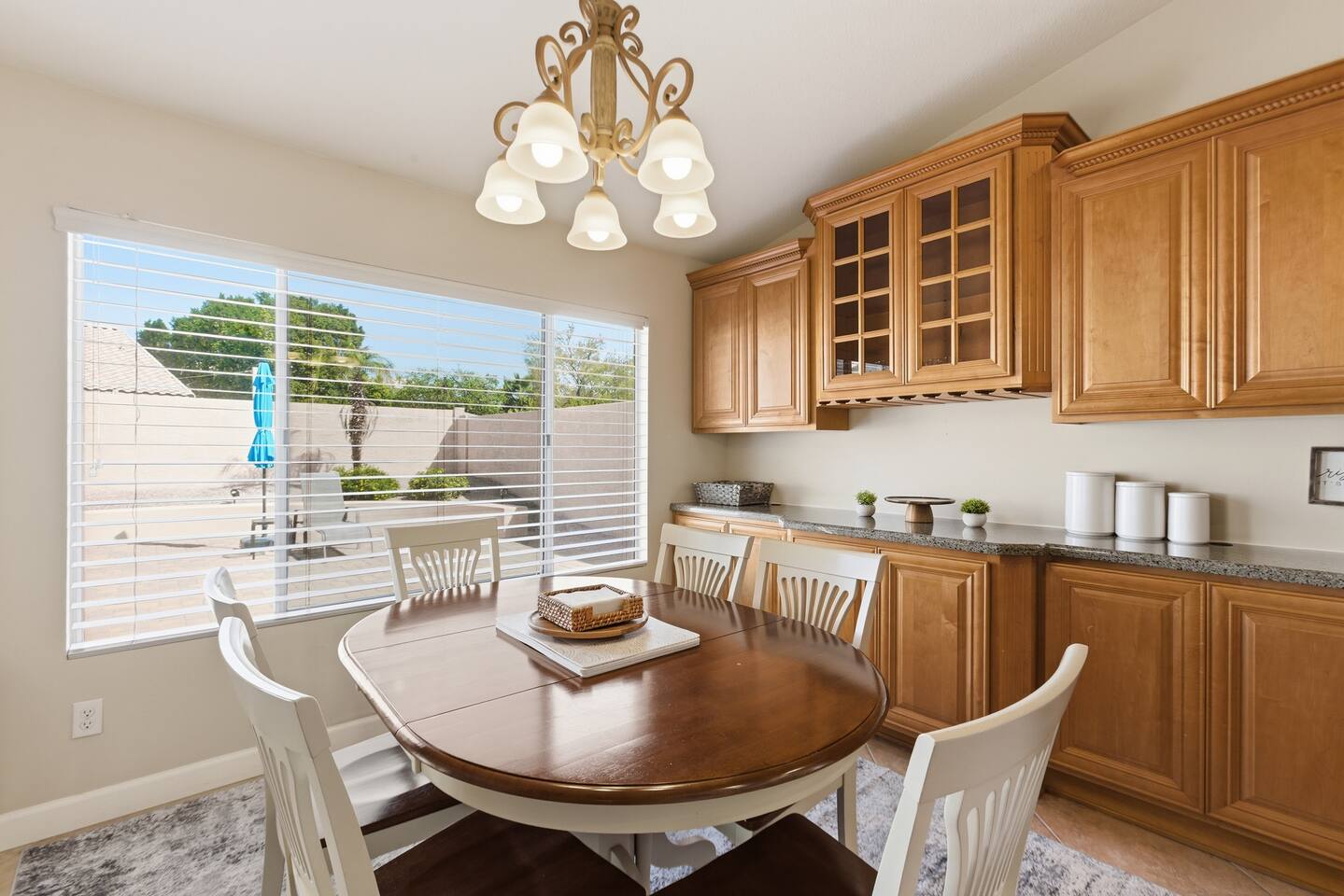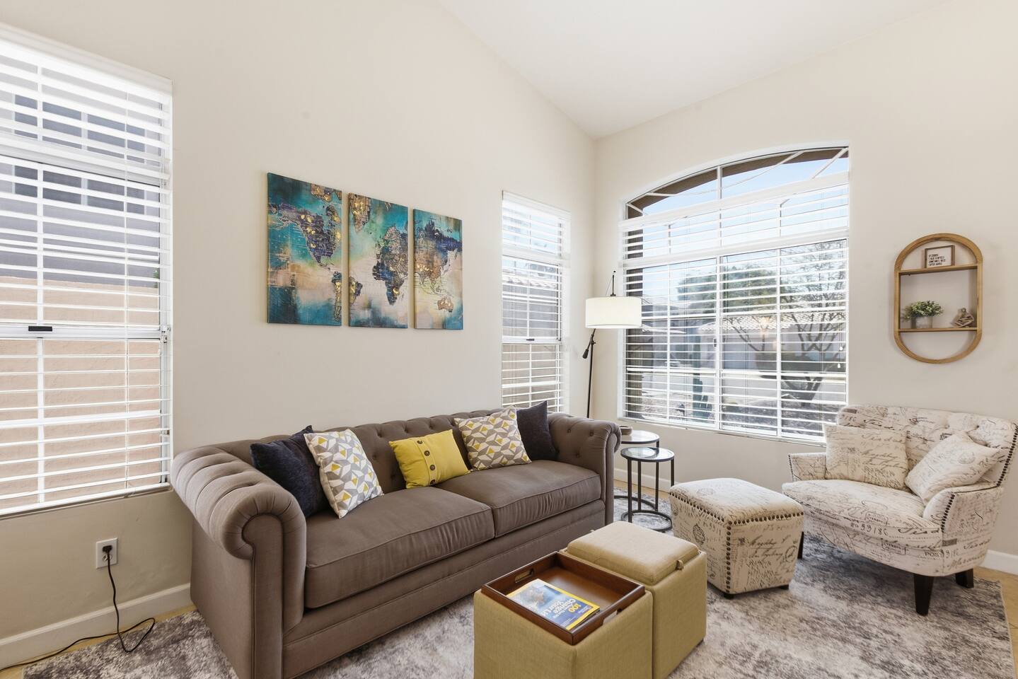 The home is in a great family neighborhood, with sidewalks and parks are all within walking distance. People get outdoors and ride their bikes and walk the dogs. Starbucks is a 15 minute walk or 3 minute drive. That 3 minute drive will also get you to the grocery store, dry cleaner, drug store and even Urgent care is just around the corner should one of your loved ones take ill. Close to golfing, spring training, movies, the outlet mall, casino's, and every kind of dining imaginable.