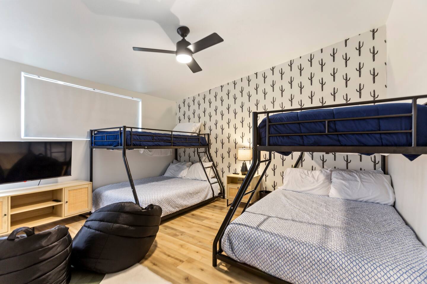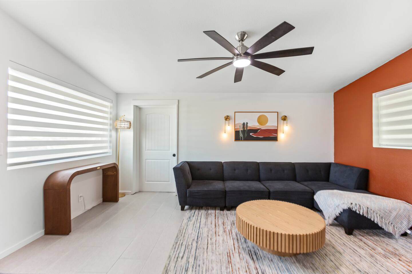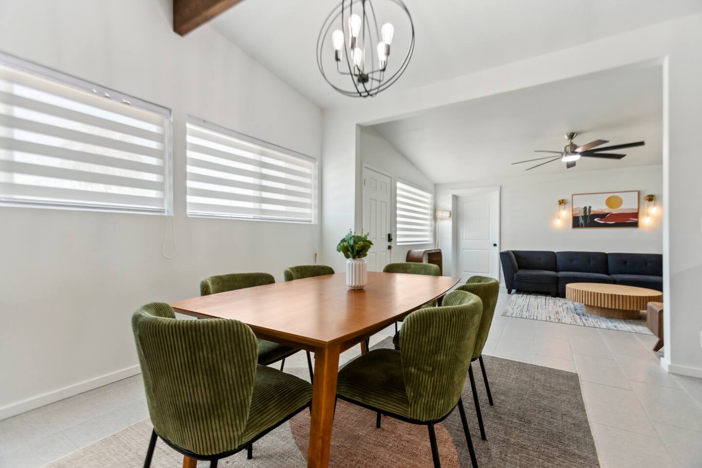 The Space: King master suite + 3 extra bedrooms Sleeping config ideal for families: kings, queens, and enough room for kids Open living, dining, and chef’s kitchen — perfect for family dinners and game nights Location Highlights: 10‑minute drive to Sloan Park (Cubs spring training), Mesa Amphitheatre & downtown Mesa Close to Golfland Sunsplash, hiking at Usery Mountain, Old Town, museums Easy freeway access to Phoenix, ASU, and Mesa Gateway Airport Why Choose Us: Our thoughtfully designed, modern retreat earned rave reviews for comfort, style, and convenience. Guests return year after year — and your family will love it too. Extras: Fast Wi‑Fi, smart TV, board games, high‑chair, pack‑n‑play available. Essentials like towels, linens, soaps, coffee provided.
