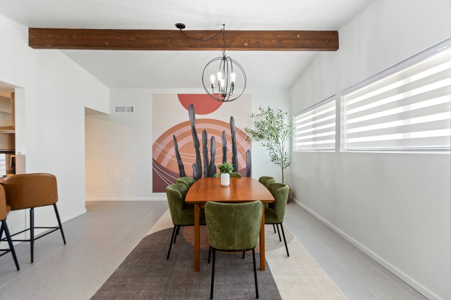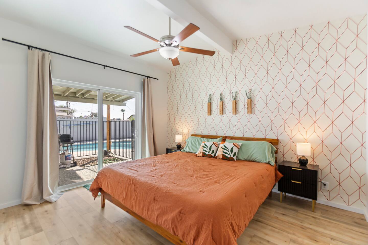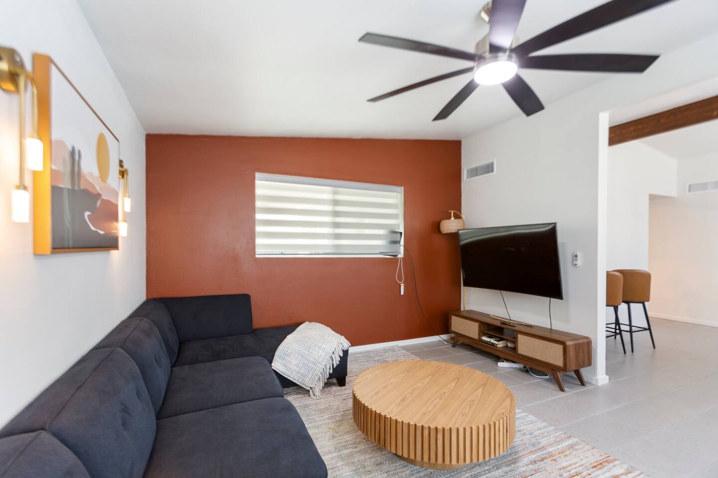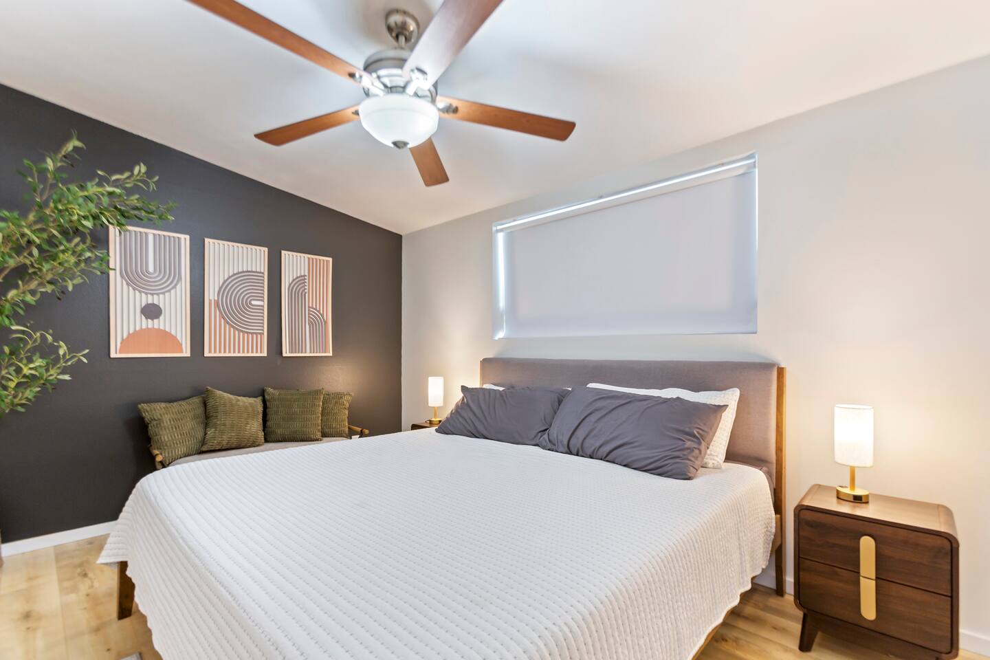 The Space: King master suite + 3 extra bedrooms Sleeping config ideal for families: kings, queens, and enough room for kids Open living, dining, and chef’s kitchen — perfect for family dinners and game nights Location Highlights: 10‑minute drive to Sloan Park (Cubs spring training), Mesa Amphitheatre & downtown Mesa Close to Golfland Sunsplash, hiking at Usery Mountain, Old Town, museums Easy freeway access to Phoenix, ASU, and Mesa Gateway Airport Why Choose Us: Our thoughtfully designed, modern retreat earned rave reviews for comfort, style, and convenience. Guests return year after year — and your family will love it too. Extras: Fast Wi‑Fi, smart TV, board games, high‑chair, pack‑n‑play available. Essentials like towels, linens, soaps, coffee provided.