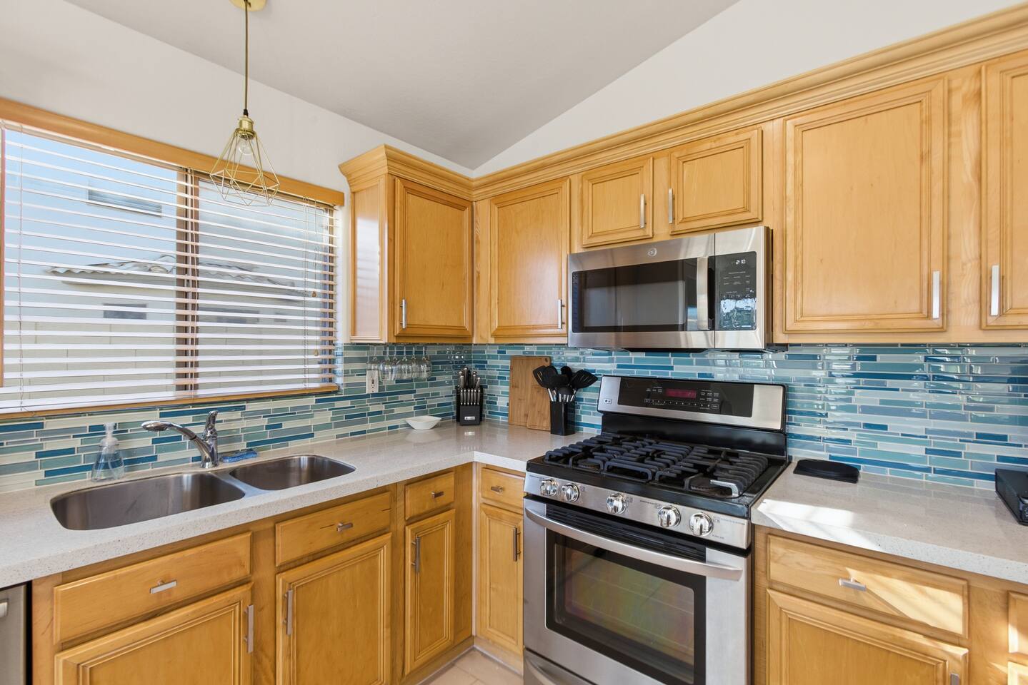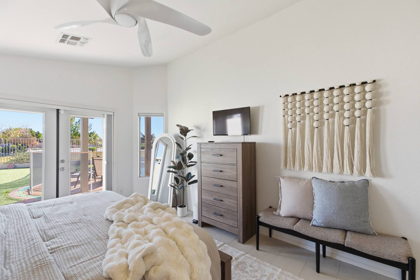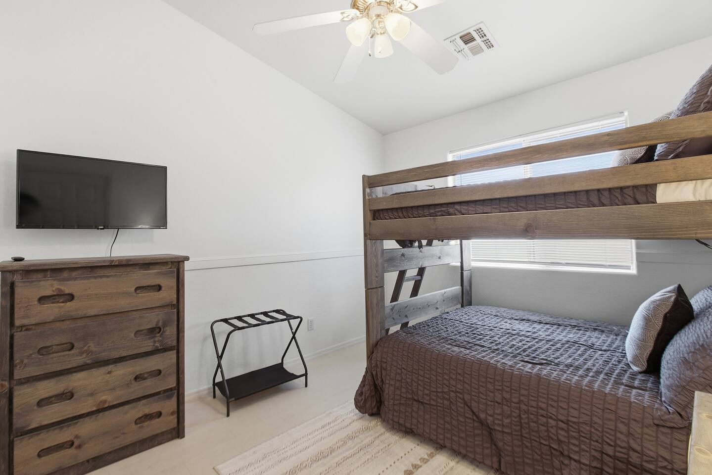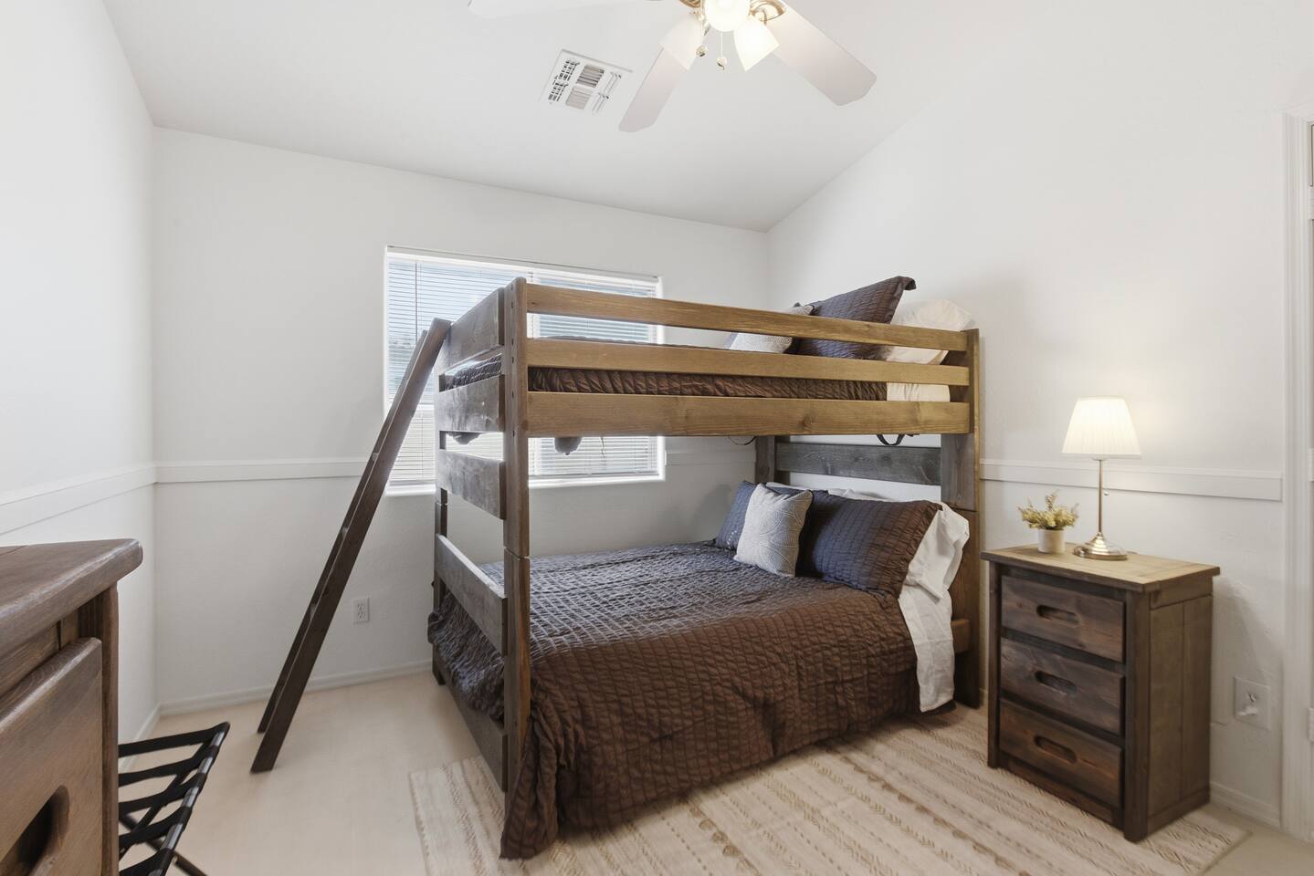 Breezy coastal vibes meet desert sunshine. This bright Mesa home flows from a chill living room (smart TV + comfy seating) to a fully equipped kitchen and dining for the whole crew. Slide the door open and let the pool sparkle set the mood—coffee at sunrise, swims by day, starry skies at night. Fast Wi-Fi keeps work and streaming smooth. *3 BR/2BA • Sleeps up to 8 * Coastal palette (light woods, sea-glass blues) * Fully stocked kitchen: cookware, baking tools, sharp knives, basics * In-home washer/dryer • central A/C Bedrooms & Baths: Primary Suite: king bed, closet storage, en-suite bath Bedroom 2: queen bed Bedroom 3: twin-over-full bunk (sleeps 3–4) Baths (2): fresh towels, starter toiletries, hair dryer Outdoor & Pool: Your private backyard resort: swim, lounge, and unwind on the shaded patio. The pool is open year-round and typically most comfortable April–October (Heating optional for cooler months at $50/night. Just let us know ahead of time!). Plenty of seating for snacks, sun, and conversation. Work & Play: Fast Wi-Fi, smart TVs (BYO logins), board & card games, and a dining table that doubles as a laptop-friendly workspace. Guest Access: Entire single-family home + private backyard and pool. Keypad self check-in. Driveway parking (garage is unavailable). Who It’s For: Families, couples, and friend groups who want easy, stylish comfort—close to spring training, Tempe/Scottsdale fun, parks, groceries, coffee, and freeway access—without the noise. Notes: Pool is unheated. Swim comfort varies seasonally; best April–October. Pool can be heated for $50/night during cooler months. Just let us know ahead of time! Exterior maintenance may occur during daytime hours. Max occupancy: 8 overnight guests. What’s Nearby (quick hits) * Downtown Mesa / Mesa Arts Center – ~20 min / ~11–12 mi. * Sloan Park (Cubs Spring Training) – ~22–25 min / ~15–16 mi. * Hohokam Stadium (A’s Spring Training) – ~20–22 min / ~13–14 mi. * Usery Mountain Regional Park (hiking) – ~20–25 min / ~12–14 mi. * Lost Dutchman State Park / Superstition Mountains – ~25–30 min / ~16–18 mi. * Riverview Park + Mesa Riverview shopping – ~22–25 min / ~15–16 mi. * Tempe Marketplace – ~25–28 min / ~18 mi. * Old Town Scottsdale – ~35–40 min / ~25–27 mi. Airports * Phoenix Sky Harbor (PHX) – ~30–35 min / ~28–30 mi. * Phoenix–Mesa Gateway (AZA) – ~20–25 min / ~10–12 mi. Parks, playgrounds, and greenbelts Groceries, coffee shops, local restaurants Spring Training venues, Tempe Marketplace, Old Town Scottsdale Quick access to US-60, Loop-101/202 for greater PHX Amenity Snapshot (for the checkboxes) Private pool • fenced backyard Fully equipped kitchen Smart TVs • fast Wi-Fi In-home washer/dryer Driveway parking • keypad entry Family-friendly layout • games