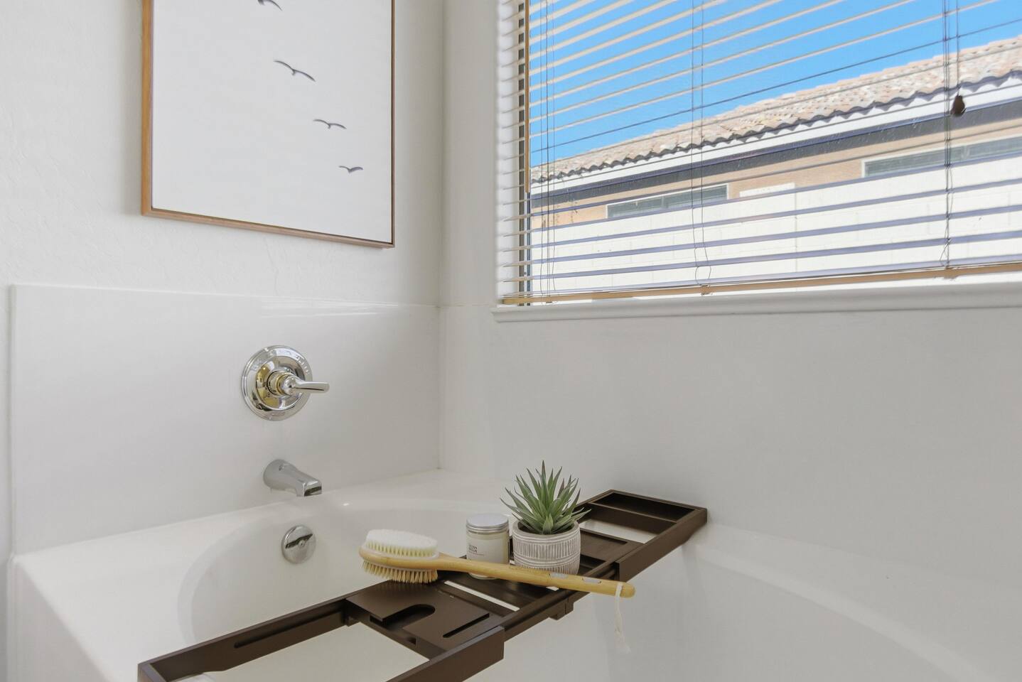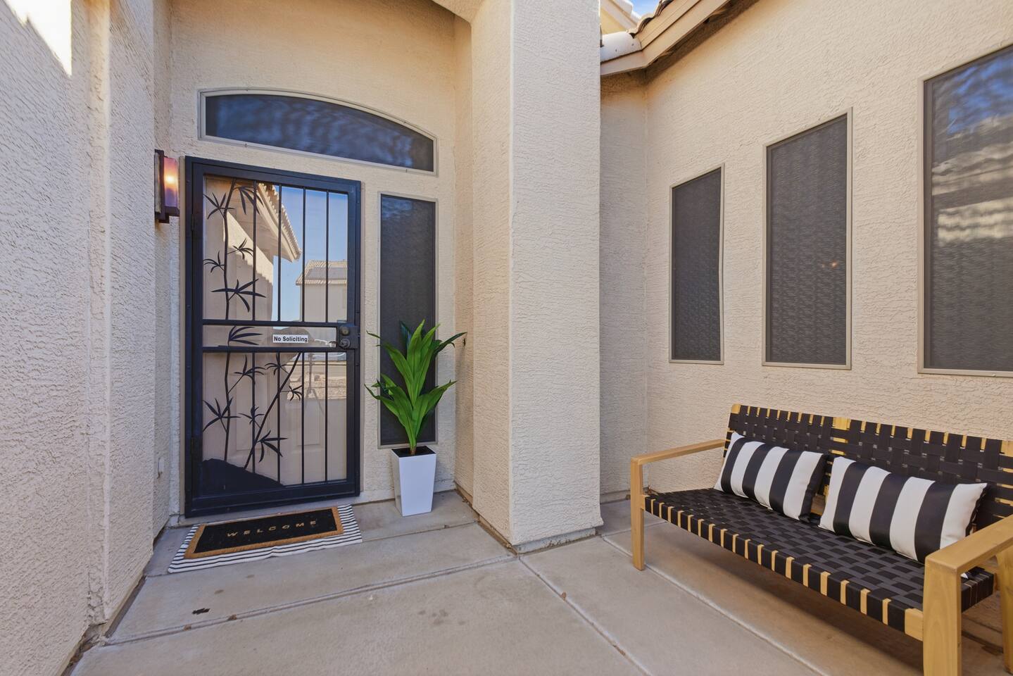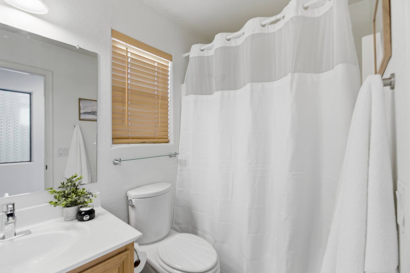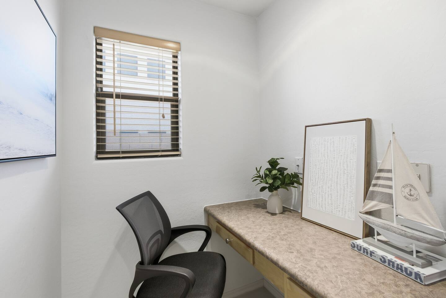 Breezy coastal vibes meet desert sunshine. This bright Mesa home flows from a chill living room (smart TV + comfy seating) to a fully equipped kitchen and dining for the whole crew. Slide the door open and let the pool sparkle set the mood—coffee at sunrise, swims by day, starry skies at night. Fast Wi-Fi keeps work and streaming smooth. *3 BR/2BA • Sleeps up to 8 * Coastal palette (light woods, sea-glass blues) * Fully stocked kitchen: cookware, baking tools, sharp knives, basics * In-home washer/dryer • central A/C Bedrooms & Baths: Primary Suite: king bed, closet storage, en-suite bath Bedroom 2: queen bed Bedroom 3: twin-over-full bunk (sleeps 3–4) Baths (2): fresh towels, starter toiletries, hair dryer Outdoor & Pool: Your private backyard resort: swim, lounge, and unwind on the shaded patio. The pool is open year-round and typically most comfortable April–October (Heating optional for cooler months at $50/night. Just let us know ahead of time!). Plenty of seating for snacks, sun, and conversation. Work & Play: Fast Wi-Fi, smart TVs (BYO logins), board & card games, and a dining table that doubles as a laptop-friendly workspace. Guest Access: Entire single-family home + private backyard and pool. Keypad self check-in. Driveway parking (garage is unavailable). Who It’s For: Families, couples, and friend groups who want easy, stylish comfort—close to spring training, Tempe/Scottsdale fun, parks, groceries, coffee, and freeway access—without the noise. Notes: Pool is unheated. Swim comfort varies seasonally; best April–October. Pool can be heated for $50/night during cooler months. Just let us know ahead of time! Exterior maintenance may occur during daytime hours. Max occupancy: 8 overnight guests. What’s Nearby (quick hits) * Downtown Mesa / Mesa Arts Center – ~20 min / ~11–12 mi. * Sloan Park (Cubs Spring Training) – ~22–25 min / ~15–16 mi. * Hohokam Stadium (A’s Spring Training) – ~20–22 min / ~13–14 mi. * Usery Mountain Regional Park (hiking) – ~20–25 min / ~12–14 mi. * Lost Dutchman State Park / Superstition Mountains – ~25–30 min / ~16–18 mi. * Riverview Park + Mesa Riverview shopping – ~22–25 min / ~15–16 mi. * Tempe Marketplace – ~25–28 min / ~18 mi. * Old Town Scottsdale – ~35–40 min / ~25–27 mi. Airports * Phoenix Sky Harbor (PHX) – ~30–35 min / ~28–30 mi. * Phoenix–Mesa Gateway (AZA) – ~20–25 min / ~10–12 mi. Parks, playgrounds, and greenbelts Groceries, coffee shops, local restaurants Spring Training venues, Tempe Marketplace, Old Town Scottsdale Quick access to US-60, Loop-101/202 for greater PHX Amenity Snapshot (for the checkboxes) Private pool • fenced backyard Fully equipped kitchen Smart TVs • fast Wi-Fi In-home washer/dryer Driveway parking • keypad entry Family-friendly layout • games
