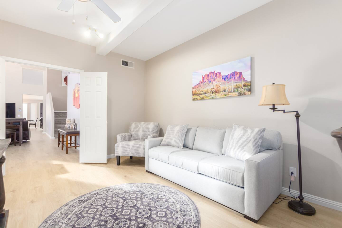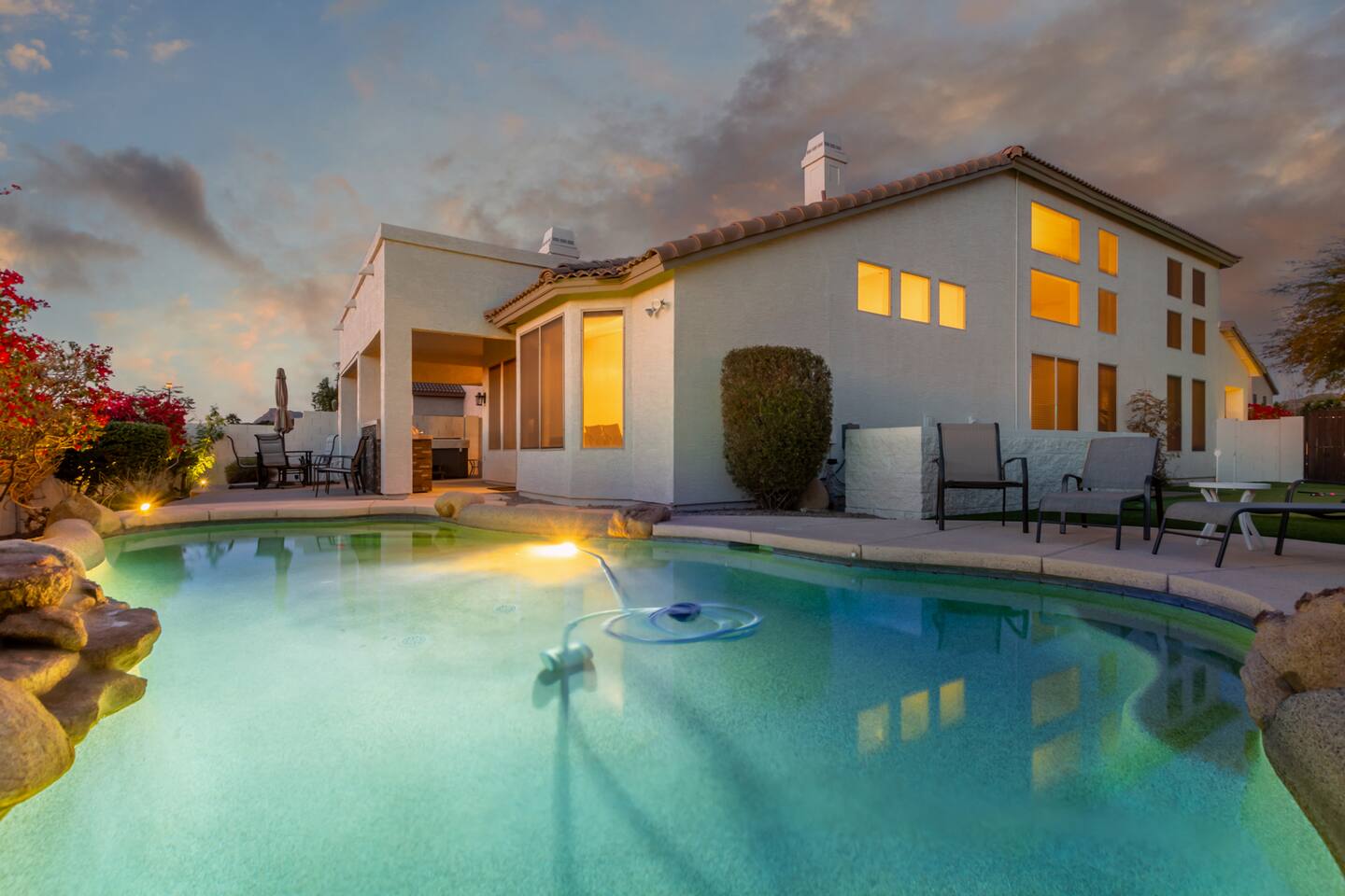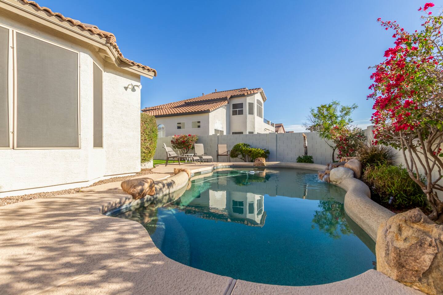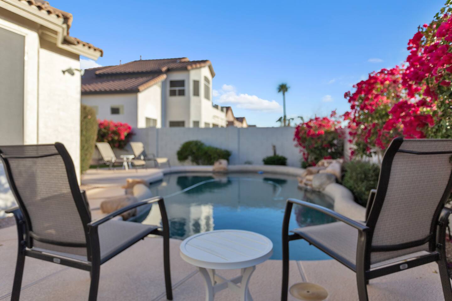 Imagine this: The kids splashing in the pool while you relax poolside, sipping a cold drink and soaking in the breathtaking Arizona Sunsets. Conquering epic hikes or mountain bike trails together, then soothing tired muscles in the relaxing hot tub while watching your favorite show. A little putting practice under the star-filled desert sky after a delicious barbecue dinner on the patio. But wait, there's more! Our fully-equipped home is your base camp for endless family fun. We've got everything you need to create lasting memories: Spacious bedrooms for a great family reunion —or a few families fun getaway— with a first-floor master, 3 additional full bedrooms upstairs and a full-size pull-out couch in the office downstairs. You won’t get bored with lots of games for rainy day fun, and plenty of tv's and enough seating for your whole crew for those who need a break from the heat. A gourmet kitchen perfect for whipping up family feasts. And of course, high-speed Wi-Fi to share your adventures with the world. Beyond the Backyard Bliss: Located in the heart of the exclusive Red Mountain area, you'll be steps away from: Family-friendly restaurants serving up delicious local fare (In and Out anyone?). Mesmerizing hiking trails with stunning red rock formations. Saguaro Lake for boating, paddleboarding, fishing or enjoy a beautiful sunset cruise. Top-rated attractions like the Mesa Arts Center and the MIM Music Museum in North Phoenix, or a Spring Training Baseball Game in March. This is more than just a vacation rental, it's an experience! Book your stay today and create memories that will last a lifetime. P.S. We know packing for a family trip can be a hassle. That's why we provide pool towels, as well as two twin blow-up mattresses and a pack-and-play for your little ones (just let us know in advance!). Ready to escape the ordinary? We can't wait to host you! KEY FEATURES: ☀ First floor Master Suite ☀ 3 additional Bedrooms (upstairs) ☀ Office with desk and pull-out couch (downstairs) ☀ Fully-equipped kitchen ☀ Smart TVs ☀ Full-size washer + dryer ☀ High-speed WiFi ☀ Free onsite parking ☀ Perfect getaway for Hikers, Mountain Bikers, Road Bikers and Golfers You will absolutely LOVE our prime location during your stay and proximity to all the fun: ☀ 2 minutes from the 202 ☀ Sprouts Farmers Market (Grocery Store) - 0.6 Miles ☀ Fat Cats Entertainment Center - 0.7 Miles ☀ Red Mountain Ranch Country Club - 1.2 Miles ☀ Las Sendas Golf Club - 2.6 Miles ☀ Bush Highway Trailhead - 3.1 Miles ☀ Usery Mountain Regional Park - 7 Miles ☀ Rio Salado Sportsman's Club - 7.1 Miles ☀ Dana Park Shopping Center - 9.8 Miles ☀ Bass Pro Shops - 12 Miles ☀ Downtown Mesa - 12.5 Miles ☀ Sloan Park - Chicago Cubs Spring Training - 13 miles ☀ Downtown Gilbert - 13.7 Miles ☀ Saguaro Lake Marina - 15 miles ☀ Phoenix-Mesa Gateway Airport - 17 Miles ☀ Desert Botanical Garden/Phoenix Zoo/Papago Park - 19 miles ☀ Old Town Scottsdale - 19 miles ☀ Phoenix Sky Harbor Airport - 19 miles ☀ Topgolf Gilbert - 19 miles ☀ TopGolf Scottsdale - 20 Miles ☀ SanTan Village Shopping Center - 20 miles ☀ Odysea Aquarium - 21 Miles