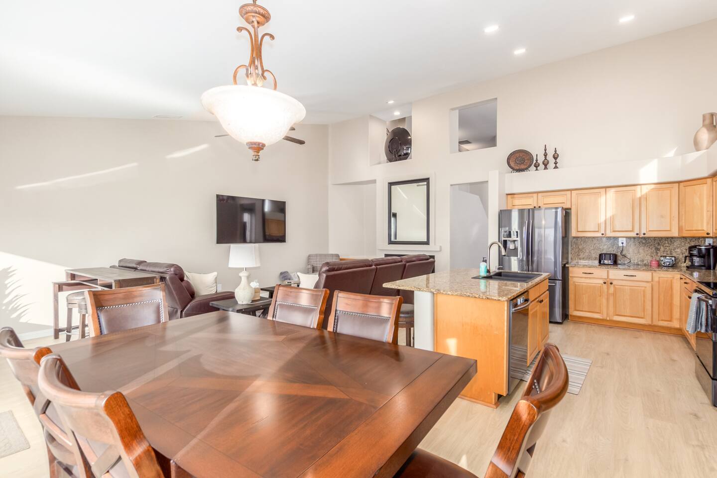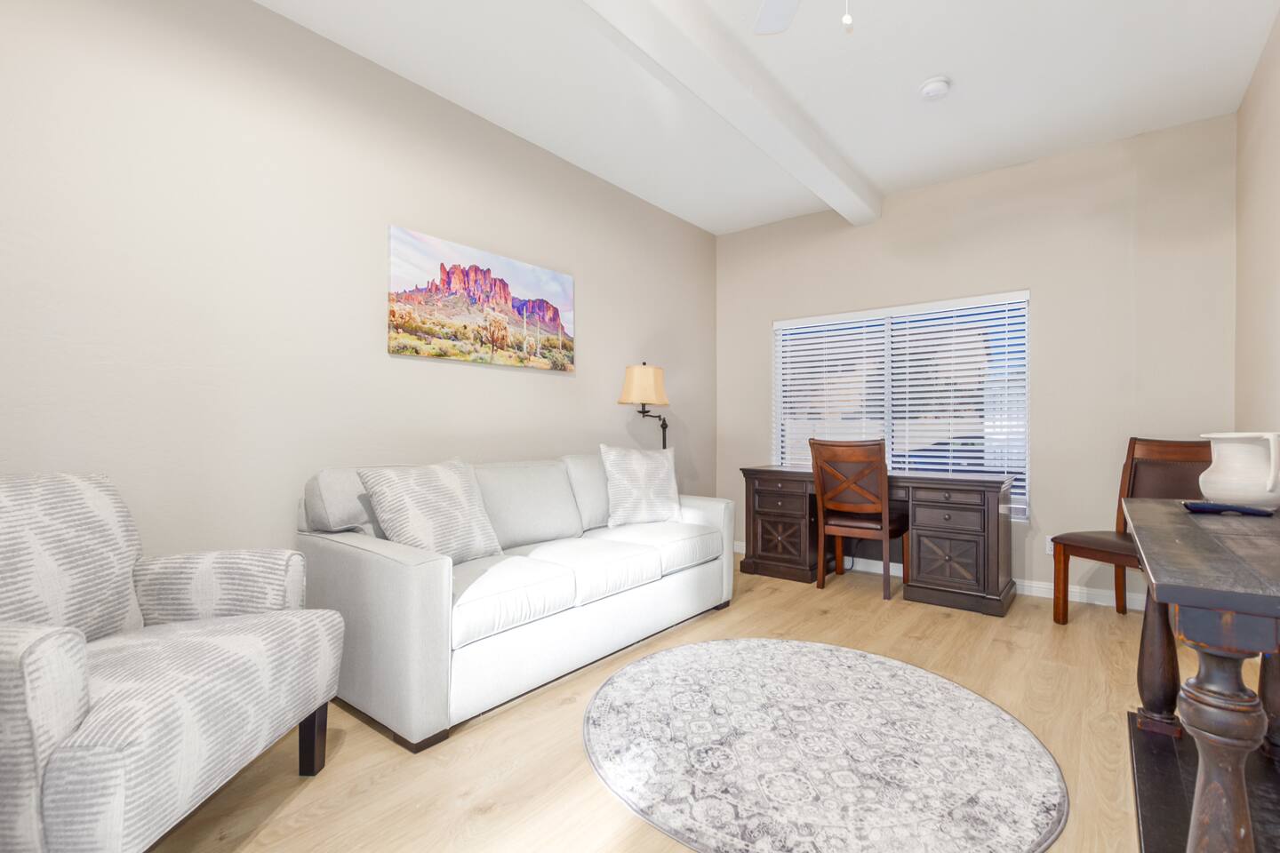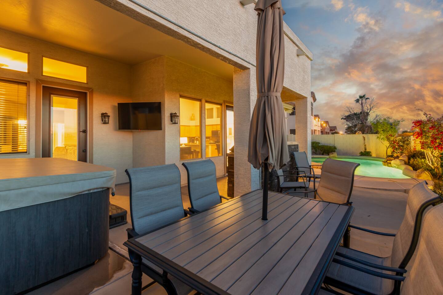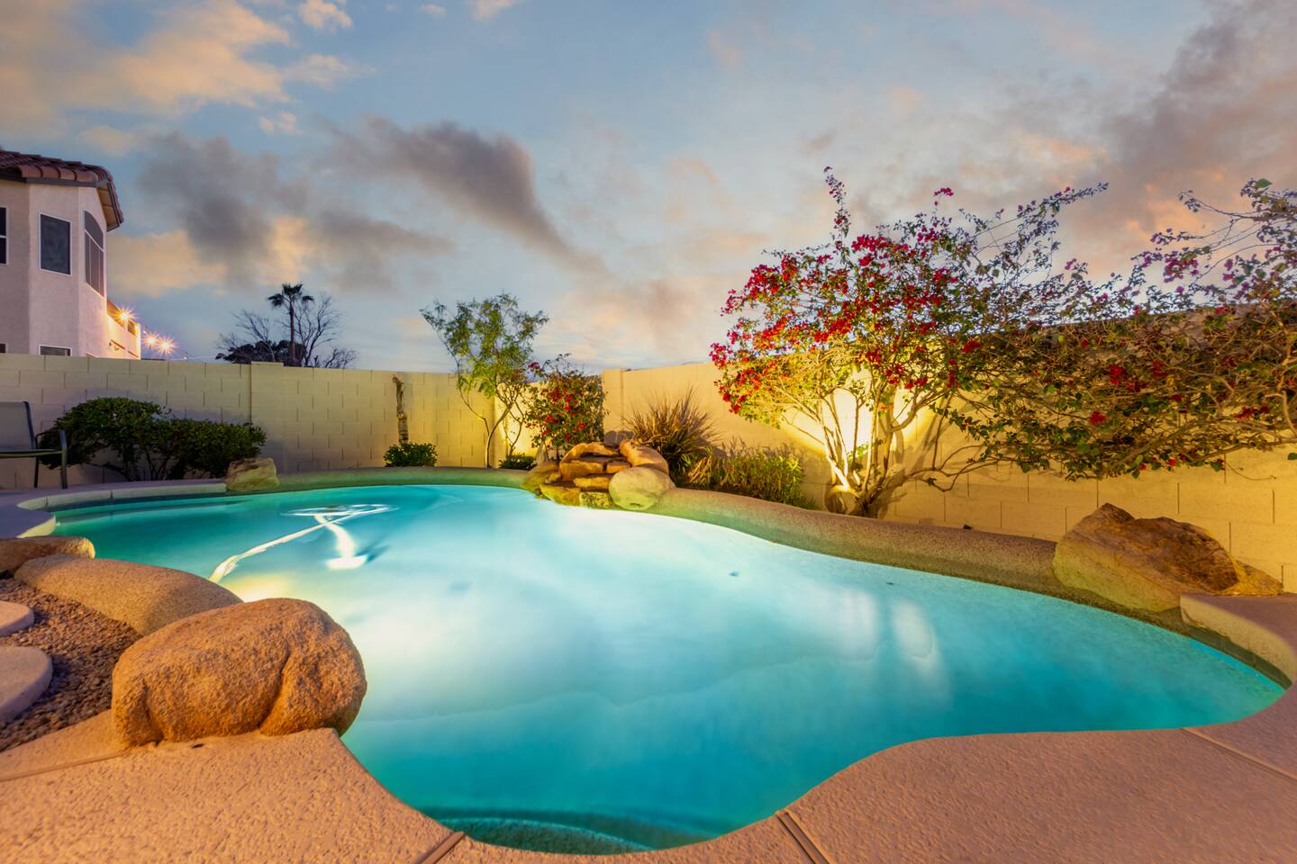 Imagine this: The kids splashing in the pool while you relax poolside, sipping a cold drink and soaking in the breathtaking Arizona Sunsets. Conquering epic hikes or mountain bike trails together, then soothing tired muscles in the relaxing hot tub while watching your favorite show. A little putting practice under the star-filled desert sky after a delicious barbecue dinner on the patio. But wait, there's more! Our fully-equipped home is your base camp for endless family fun. We've got everything you need to create lasting memories: Spacious bedrooms for a great family reunion —or a few families fun getaway— with a first-floor master, 3 additional full bedrooms upstairs and a full-size pull-out couch in the office downstairs. You won’t get bored with lots of games for rainy day fun, and plenty of tv's and enough seating for your whole crew for those who need a break from the heat. A gourmet kitchen perfect for whipping up family feasts. And of course, high-speed Wi-Fi to share your adventures with the world. Beyond the Backyard Bliss: Located in the heart of the exclusive Red Mountain area, you'll be steps away from: Family-friendly restaurants serving up delicious local fare (In and Out anyone?). Mesmerizing hiking trails with stunning red rock formations. Saguaro Lake for boating, paddleboarding, fishing or enjoy a beautiful sunset cruise. Top-rated attractions like the Mesa Arts Center and the MIM Music Museum in North Phoenix, or a Spring Training Baseball Game in March. This is more than just a vacation rental, it's an experience! Book your stay today and create memories that will last a lifetime. P.S. We know packing for a family trip can be a hassle. That's why we provide pool towels, as well as two twin blow-up mattresses and a pack-and-play for your little ones (just let us know in advance!). Ready to escape the ordinary? We can't wait to host you! KEY FEATURES: ☀ First floor Master Suite ☀ 3 additional Bedrooms (upstairs) ☀ Office with desk and pull-out couch (downstairs) ☀ Fully-equipped kitchen ☀ Smart TVs ☀ Full-size washer + dryer ☀ High-speed WiFi ☀ Free onsite parking ☀ Perfect getaway for Hikers, Mountain Bikers, Road Bikers and Golfers You will absolutely LOVE our prime location during your stay and proximity to all the fun: ☀ 2 minutes from the 202 ☀ Sprouts Farmers Market (Grocery Store) - 0.6 Miles ☀ Fat Cats Entertainment Center - 0.7 Miles ☀ Red Mountain Ranch Country Club - 1.2 Miles ☀ Las Sendas Golf Club - 2.6 Miles ☀ Bush Highway Trailhead - 3.1 Miles ☀ Usery Mountain Regional Park - 7 Miles ☀ Rio Salado Sportsman's Club - 7.1 Miles ☀ Dana Park Shopping Center - 9.8 Miles ☀ Bass Pro Shops - 12 Miles ☀ Downtown Mesa - 12.5 Miles ☀ Sloan Park - Chicago Cubs Spring Training - 13 miles ☀ Downtown Gilbert - 13.7 Miles ☀ Saguaro Lake Marina - 15 miles ☀ Phoenix-Mesa Gateway Airport - 17 Miles ☀ Desert Botanical Garden/Phoenix Zoo/Papago Park - 19 miles ☀ Old Town Scottsdale - 19 miles ☀ Phoenix Sky Harbor Airport - 19 miles ☀ Topgolf Gilbert - 19 miles ☀ TopGolf Scottsdale - 20 Miles ☀ SanTan Village Shopping Center - 20 miles ☀ Odysea Aquarium - 21 Miles